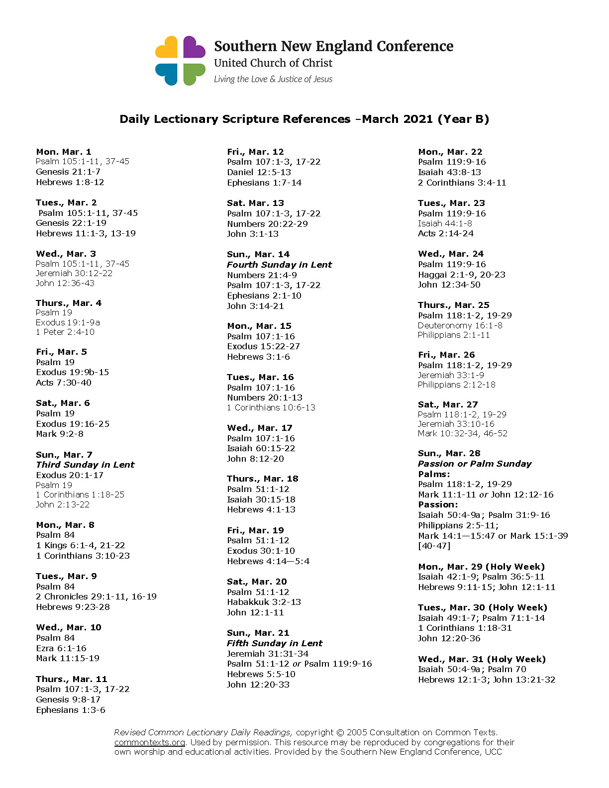It’s March… Again. And it’s Lent… Again. We’ve been in this COVID world for a year now. Grief anniversaries can sneak up on us. And a sense of loss can bring up other losses. Time and time again I’ve talked with people who are going through a difficult time and, in the course of the conversation, found out that they are near the time of year when they lost someone they loved. Even when we don’t remember an anniversary is coming, our bodies and spirits often do.