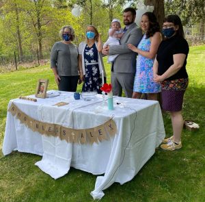 It is with great happiness that we share our son, Alexander, was baptized into the church on Sunday May 2. Rev. Beth along with Deacon Deb Sorgman led the ceremony in our backyard. A small gathering among family members was the perfect option for a ‘covid friendly’ baptism. Alex is now 6 months old and we cannot wait for him to meet everyone at CSCC.