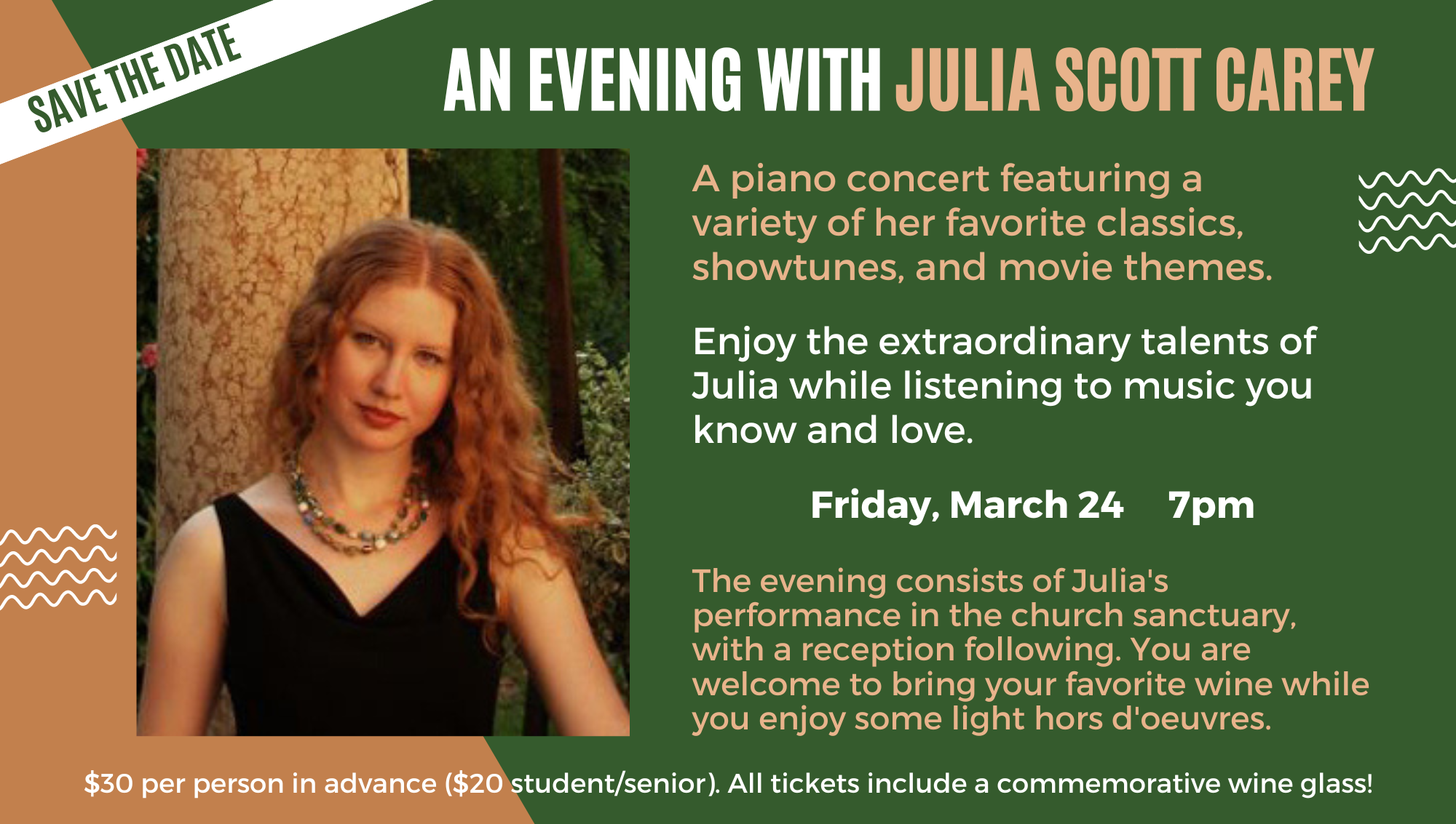 Everything for Lent is being prepared, we’re just waiting on confirmation from David Hanson for the sunrise service at the farm. Rev. Beth will be making bookmarks with all of the Lenten dates on them, and they will be distributed in the Sunday bulletins. “Rest & Care” are the themes of Lent this year. The Blessing of the Stuffies will kick it off on Feb. 26. Rev. Beth thanked everyone that helped her develop and finalize the new membership packet. She is excited to distribute it to several people who have expressed interest in membership. She noted she has spent a lot of time helping get the youth group(s) up and running. There will be three groups: 4th-8th graders; high schoolers; and an LGBT youth group for the whole community. Scout Sunday will be March 12. Preparations have begun for the 3/24 Julia concert. Glassware has been ordered, thanks to Black Hat Brew Works for suggesting their supplier who gave us a really good rate. There continue to be a lot of pastoral calls.