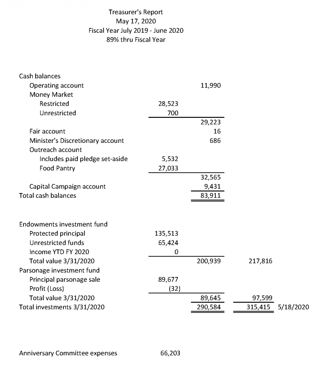 Our annual budget meeting was scheduled for June 14, and due to several extraordinary circumstances and uncertainties, it has been difficult for the church leaders to create a feasible and reasonable budget for the upcoming year. So we would like to postpone the budget meeting to September 20, 2020. This will allow for some financial questions to be answered and it will also allow for us to have a physically distanced all church meeting. We want to insure that we have all the appropriate information and that the church body has an opportunity to discuss and respond.