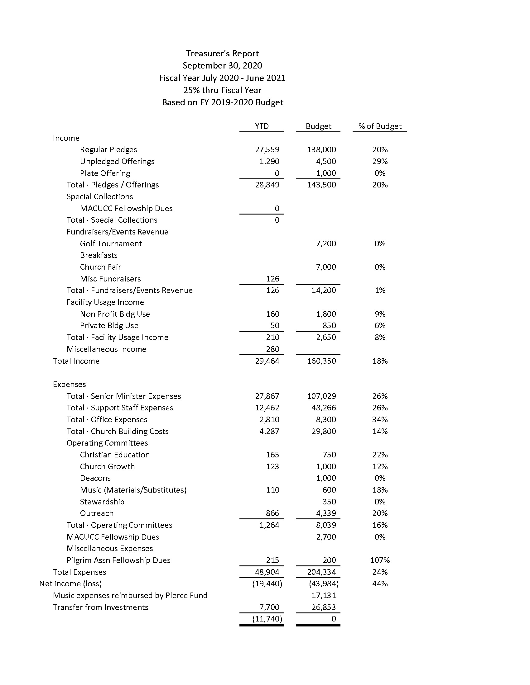 Cabinet members in attendance: Rev. Beth Stotts, Pastor; Anne Malmquist, Moderator; Denise Molinari, Vice Moderator; Dave Sheibley, Treasurer; Diane Sheibley, Clerk; Lynn Pietras, Board of Deacons; Ed Buckland, Board of Trustees; Bill O’Neil, Board of Christian Outreach; Ellen Crawford, Music Committee; Barbara Morey, History & Memorials Committee; Gail Wershing (Growth)