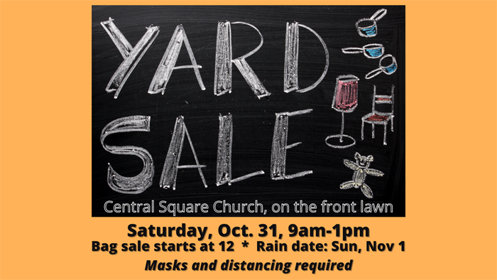 · Yard sale on the front lawn of the church on Saturday, Oct. 31. Donation items can be brought to the church on Friday, Oct. 30. Rain date is Sunday, Nov. 1.