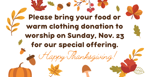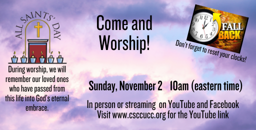 1. World Communion Sunday 10/5. Went wonderfully. Did well.
