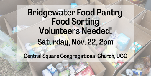 Food Pantry discussion - Reverend Beth spoke to Bridgewater Town Manager. The biggest concern is transportation. Clients getting food back to their homes is problematic. Town Manager and new director to Senior Center working on a transportation grant. They will attempt to dovetail these needs with the grant. Patrick Donahue will be preaching on October 26th.