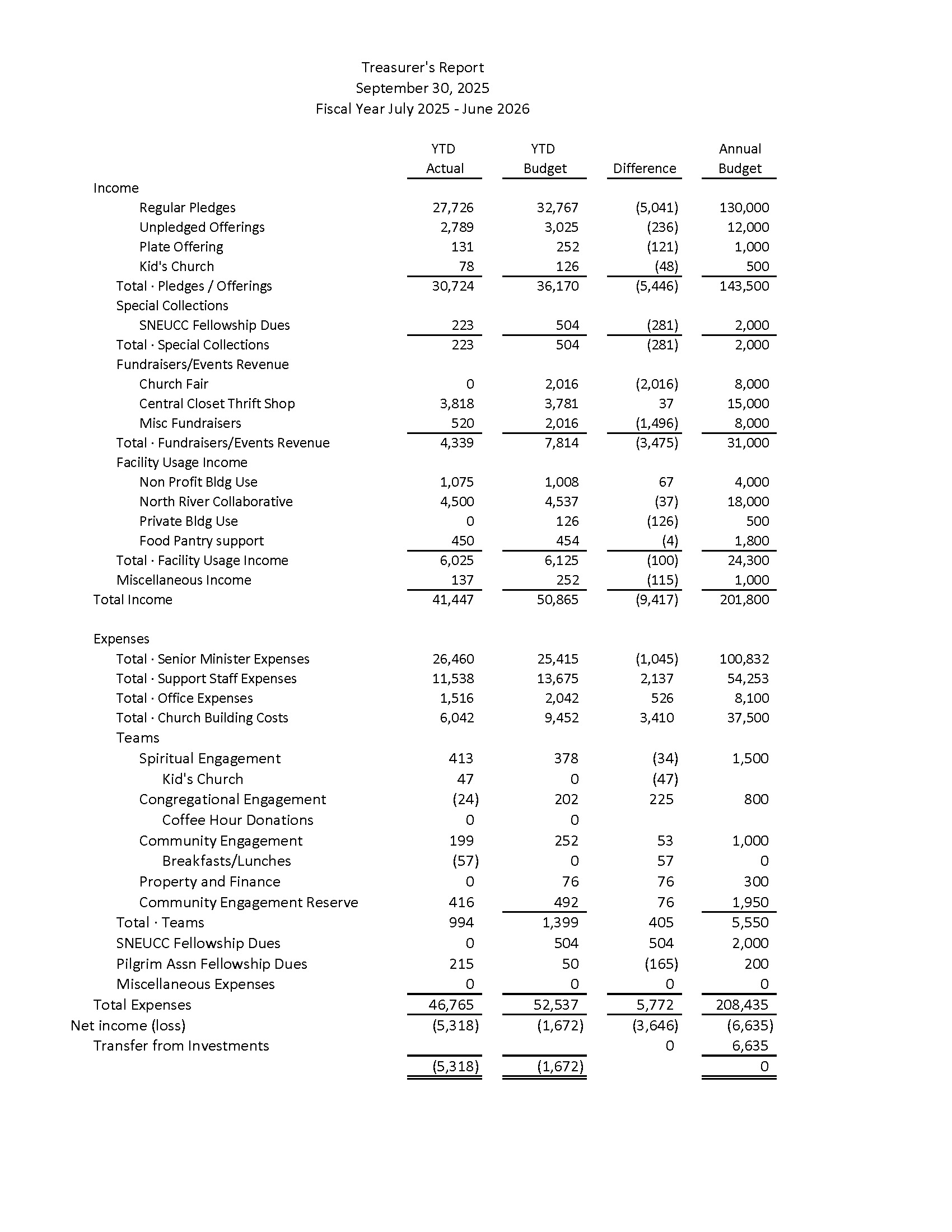 Spending more than taking in. Rummage sale was not announced but was on Facebook. Lots of stuff came in regardless. $130 a week short on average. Annual shortage $6600. No earnings had to come out of investments for the first quarter!