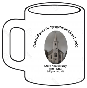 200th Anniversary commemorative coffee mugs will be available for purchase this Fall. A stylish mug with the church’s photo and writing in black will be a keepsake for this momentous occasion! They will be sold at church events and after worship on Sundays. (*Artwork on mug as pictured here may not be final image.)