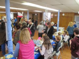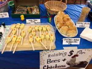 In addition to raising funds with our wooden cows, the Sunday school program at all age levels at CSCC has typically spent the month of January learning about Heifer International, and their mission worldwide to “end hunger and poverty in a sustainable way by supporting and investing alongside local farmers and their communities.” Whereas their mission started with providing animals to these communities, now the animals, fish, and fowl are raised in the country where they are needed. The focus is on raising funds to send to those countries to make the purchases. The month of study by our Sunday schoolers then culminates in our Living Gift Market where each age group has decided what animal(s) they want to sponsor, and has created appropriately-themed food and crafts to sell to the congregation at large in a “market” setting.