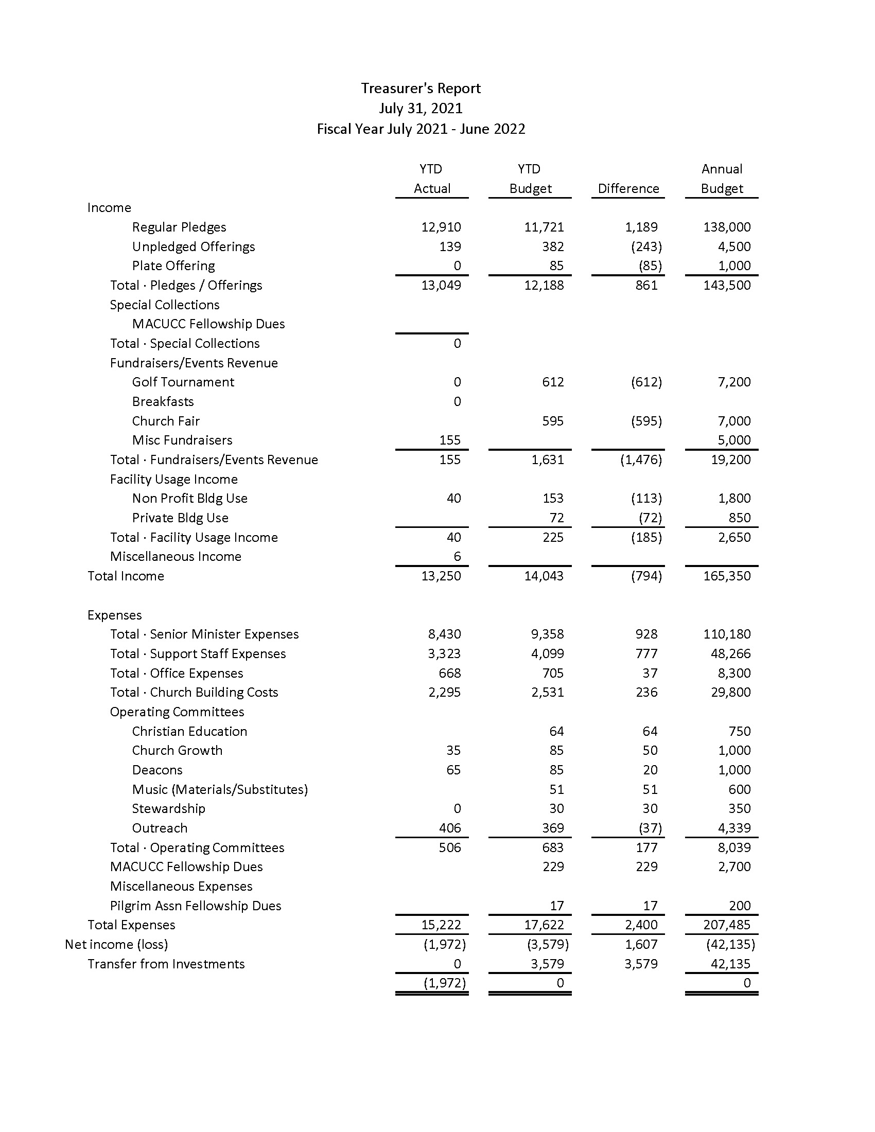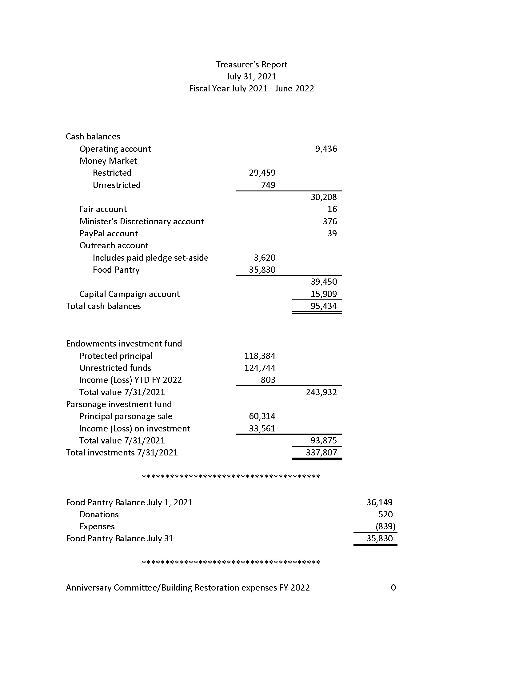 We are so very grateful for all those who have been able to continue their giving during the past year, and those that were able to give more. We know it has been a trying time for many financially as well as emotionally. With crucial annual fundraisers having had to be cancelled or downsized, such as our golf tournament, it has stressed our church finances even more than usual.