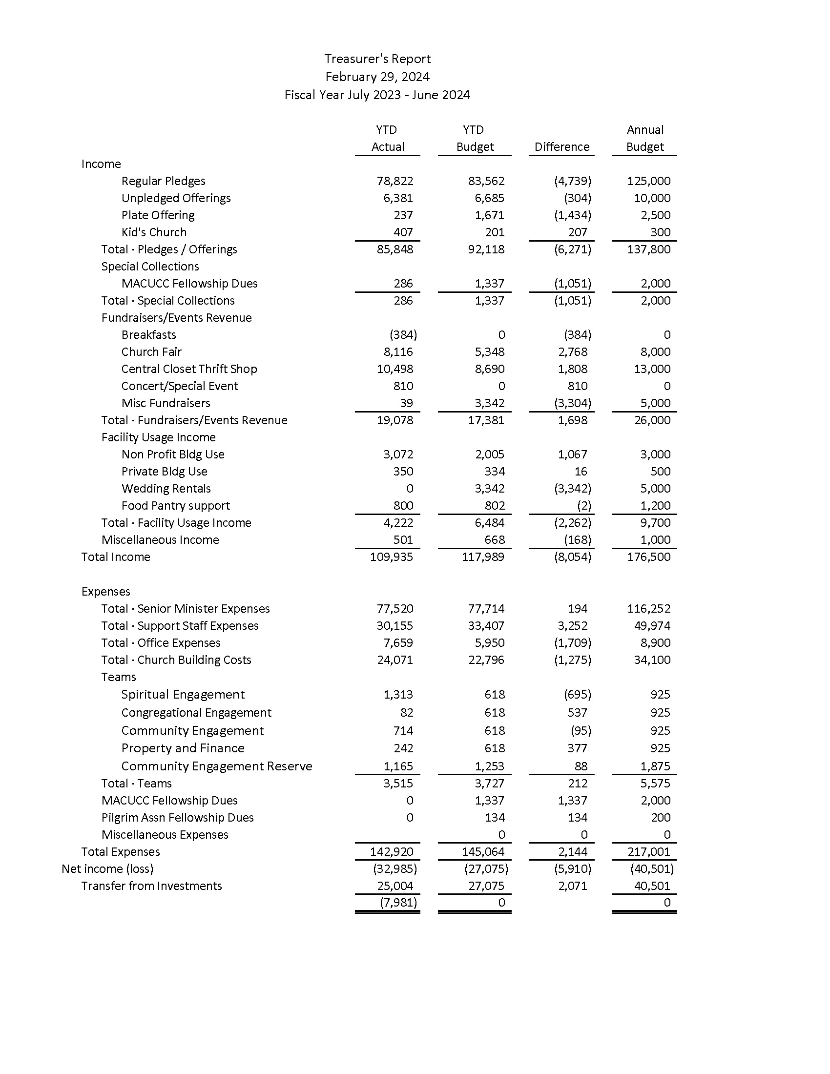 Cabinet members in attendance: Anne Malmquist, Moderator; Rev. Beth Stotts, Pastor; David Sheibley, Treasurer; Diane Sheibley, Clerk; David Hanson and John Sharland, Property and Finance Team; Krissy Cannizzo and Terry Reynolds, Community Engagement Team; Eric Stotts, Spiritual Engagement Team; Carol Chaffee, Congregational Engagement Team.